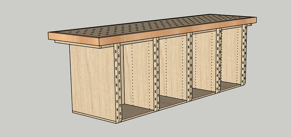 Divers plans de meubles ou objets en bois, comme des tables, un établi, des ruches, table de chevet et autres